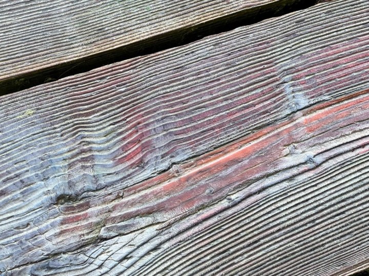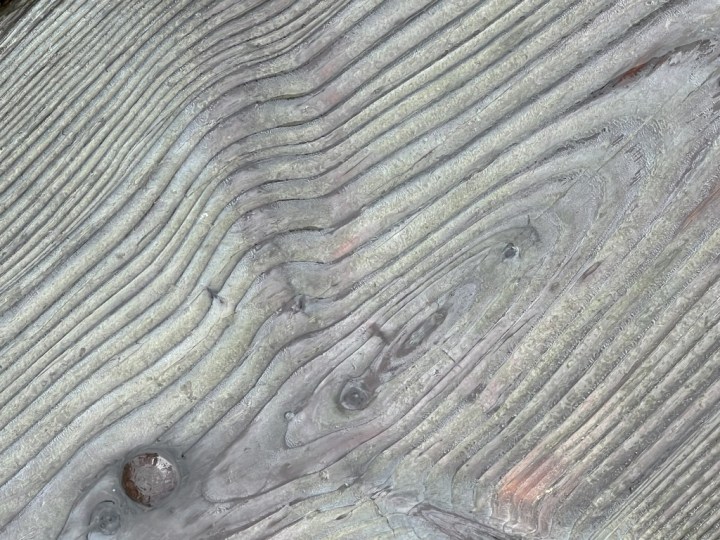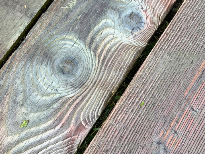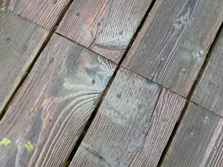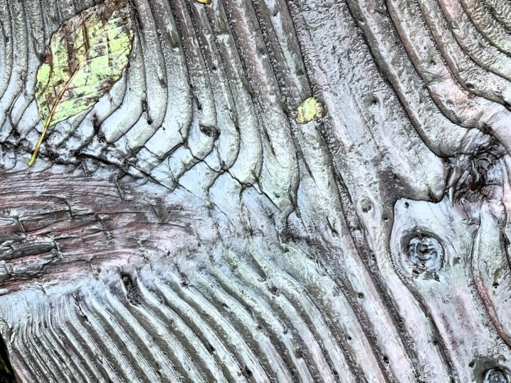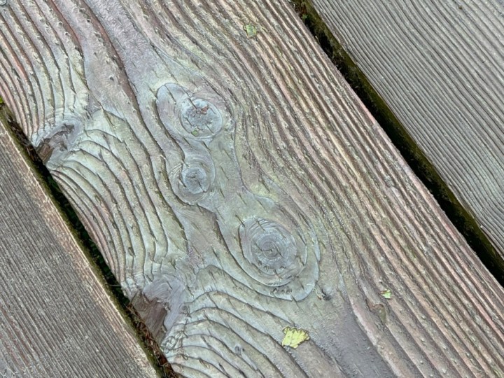 But on Thursday we had a sucker hole and I went for a walk along the Starrigavan Estuary Boardwalk. I got caught in the rain at the end, but that’s ok, I’m waterproof. But the water on the grain of the wood brought out the patterns. The water is different depths depending on the grain and that can bring out colors that you normally don’t see. It also gives the boardwalk an oily sheen although it is not oiled. It also makes walking a bit tricky, my shoes like to hydroplane on the skin of water on top of the boards. While I took pictures along the way, which I posted on Facebook, these pictures of the boards themselves interested me enough to want to do a blog post. Here they are.